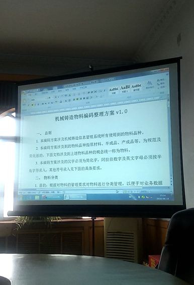 8月18日,公司領(lǐng)導及相關(guān)部門(mén)責任人在三樓大會(huì )議室召開(kāi)專(zhuān)題會(huì )議,學(xué)習生產(chǎn)管理系統軟件的物料編碼整理知識,并對軟件的存貨分類(lèi)和存貨檔案的錄入工作進(jìn)行了分工。